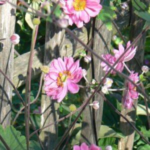Très élégante plante au feuillage découpé pourpré d’où sélèvent de longues tiges terminées par de grands épis composés de nombreuses fleurs blanches teintées de pourpre qui nourrissent de nombreux butineurs toute l’arrière saison.